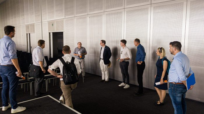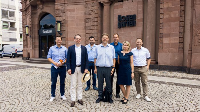 v.l.n.r: Mathias Kohl (MVV), MdB Konrad Stockmeier, Volker Beisel (Büro Stockmeier), Tobias Dworschak, Michael Pietzner (E1), Melanie Hoffmann, Florian Boss (MVV) – Foto: © Oskar Weiss (Büro Stockmeier)