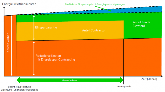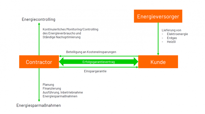 Beim Energiespar-Contracting realisiert ein spezialisiertes Energiedienstleistungsunternehmen (Contractor) in enger Partnerschaft mit dem Gebäudeeigentümer bzw. Gebäudebetreiber langfristige Projekte (meist 7-10 Jahre), um nachhaltige Energieeinsparungen zu erreichen. Der Contractor ist dabei für die Konzeption, Planung, Finanzierung, Umsetzung und den Erfolgsnachweis der Energieeinsparmaßnahmen verantwortlich.