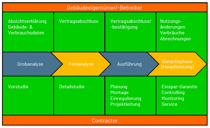 Schritt für Schritt zum Erfolg – der mehrstufige, strukturierte und systematische Ablauf von Energiespar-Contracting-Projekten
